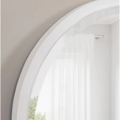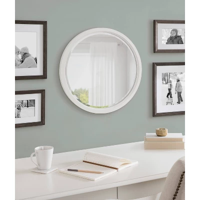 Create the modern farmhouse of your dreams with this beautiful and high-quality wooden wall mirror. The Hogan mirror is a perfect display piece for creating vibrancy and dimension in your space, allowing the area to appear more open and free-flowing. This mirror has a trendy round shape with a distressed white finish, putting a modern twist on farmhouse style. The frame itself has a solid wood composition, giving it a robust, beautiful look and high-quality resiliency for multiple years of display. The 18-inch diameter makes it a striking visual focal point for a wide range of spaces. Use it as a large vanity mirror in your master bathroom or powder room or as a decorative statement on your mantle, over a console, or paired with your favorite pieces of furniture. The Hogan mirror hangs in a matter of minutes thanks to the metal D-ring hangers that are conveniently attached to the back. This modern mirror is an excellent way to add sophistication to your farmhouse-casual decor aesthetic.