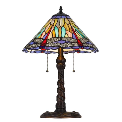 Cal Lighting’s Tiffany styled metal/resin table lamp is in Dark Bronze finish. The Tiffany shade is made of Art Stained Glass. This lamp has twin pull chain 60W switches. This lamp will be a great addition to your Livingroom, dining room, family room, office or bedroom. This lamp and shade ships in one carton.