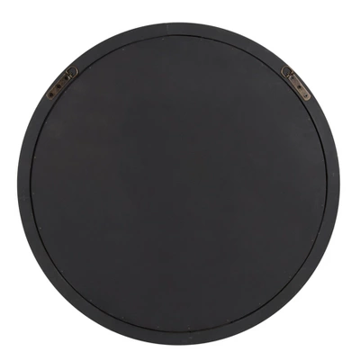 - ROUND DECORATIVE MIRROR: With an outside frame diameter of 28 inches. The mirror is 24 inches in diameter, and the wooden frame has a curved 2-inch profile