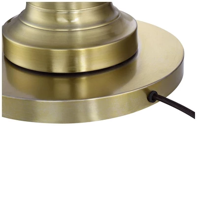 - Brushed antique brass finish base and pole. Metal construction.