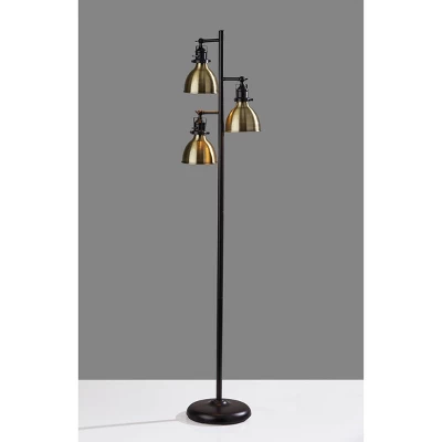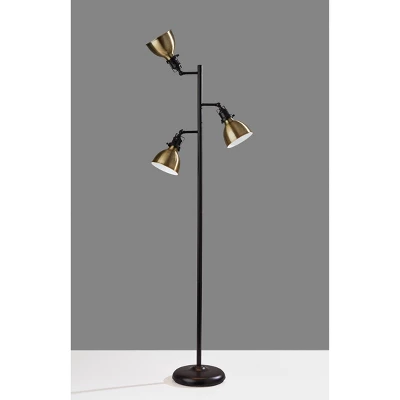 An essential floor lamp for any space, this 64.75” floor lamp brings vintage industrial character to your bedroom or living area with its metal construction and two-tone dark bronze and antique brass finish. Three task schoolhouse style shades with decorative adjustable joints allow you direct the light at the right angle for the job at hand. A convenient switch located on the pole turns the lamp on and off.