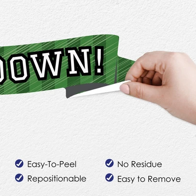 Big Dot of Happiness End Zone – Football Wall Decals includes 1 sheet of 20 assorted vinyl wall art stickers that you can arrange to add a special touch to your home decor. Wall Decal sheet measures 50” wide by 16.5” tall. Pieces range in size from 15 x 15.75” to 2 x 2”. Effortless Decor: The Sports Decor wall stickers are an easy solution for bringing in some added charm to your space within minutes! You can use the wall decals for rooms, impressive photo backdrops, or as easy decor at your Baby Shower or Birthday Party. Easy to Use: End Zone – Football vinyl decals are easy-to-peel and repositionable. Wall art stickers will adhere to various surfaces including painted walls, plastic, wood, glass, and metal. To use, make sure your surface is clean and dry. Slowly peel the sticker from the paper to avoid tearing and smooth over with your hand. They are also easy to remove, leaving no residue. High-Quality Supply: End Zone – Football wall stickers come with a quality matte finish and vibrant colors. They are printed on water-resistant professional quality material and will arrive on one full sheet rolled. Made In The USA: Sports Decor Wall Decals are designed and manufactured at our Wisconsin facility using materials that are Made in the USA.