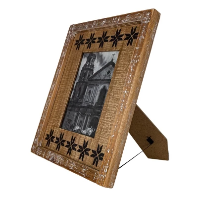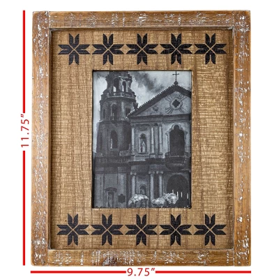 Display your cherished memories in bohemian style with this barn quilt-style frame Foreside Home & Garden. A natural wood frame with a repeating Southwest black pattern adorning an inset border adds a unique flair to this 5×7 picture frame.