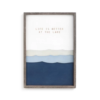 - Explore new horizons with pieces designed for use in the home featuring a modern approach to regional décor with warm colors and rustic textures that are sure to inspire; This rectangular wall art features natural artwork in bold colors with sentiment at the top that read, “Life is Better at the Lake”