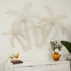 Add a fresh and whimsical tone to your living room or bedroom wall with this palm tree wall decor as an art piece display. Create a balanced space in the most creative way with this expertly crafted wall decor for captivating focal point. Place this on any blank wall space adding both texture and depth to your home. This item comes shipped in one carton. Easy to hang with 2 back keyhole hooks. Suitable for indoor use only. Glam design.