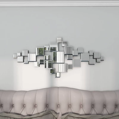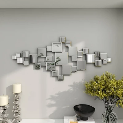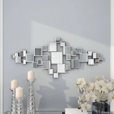 - •This mirror wall decor accentuates a rectangular orientation with assemblage of square figures