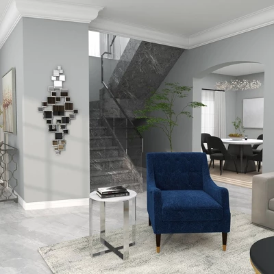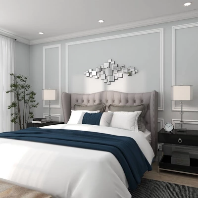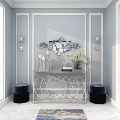 - •This glam-themed wall decor highlights reflective mirrors that give off a metallic silver finish