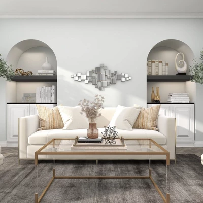 - •This collage-inspired wall decor is crafted with a medley of mirrors and solid mdf
