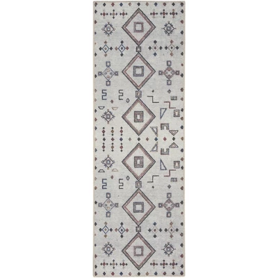 Bring global energy home with this geometric rug from the Nicole Curtis Series 1 Washable Rug. Presented in shades of burgundy, grey, and black, the global-inspired design brings a worldly look to contemporary and boho décor. This flat woven washable rug is crafted from wonderfully soft poly-chenille and cotton fibers.