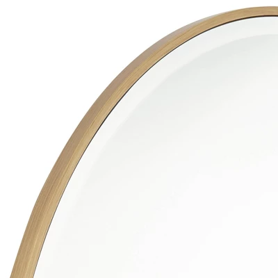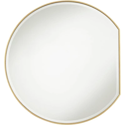 Bring artistic flair to your entry or living room with this modern contemporary round wall mirror. From Noble Park, the hand-made mirror boasts a perfectly round silhouette interrupted with a single flat edge, a creative nod to a rising sun. Mirrored glass is surrounded with a matte gold finish that brings incredible warmth to the composition.