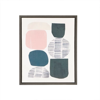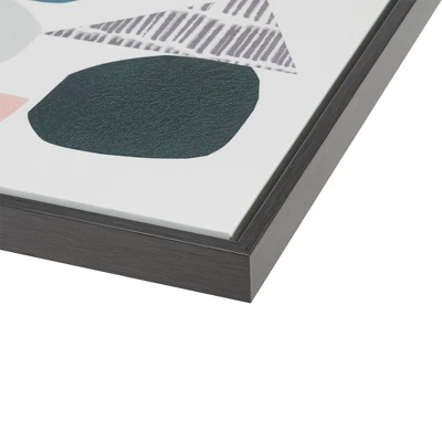 The Gray Rock Garden Gel Coat Framed Canvas 2pcs Set introduces a chic, modern look to your décor. This canvas wall art set features abstract geometric shapes in soft and dark hues that boldly contrast with the white background. The gel coating creates a glossy sheen that protects the colors from fading and the frame detailing gives this two piece set a finished look. Simple yet striking, this framed canvas wall art set provides a charming and one-of-a-kind look, for your living room or bedroom décor.