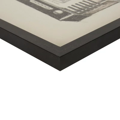 The Vintage Models by Artist James Wiens is a three piece shadowbox set brings a cool and casual update to your space. This set features printed designs of an antique radio, rotary phone, and typewriter in rich black tones on a neutral background for a nice contrast; while a sleek black frame adds the finishing touch. A gel coat finish provides added texture and a glossy touch, while also preventing fading over time. Sold as a 3 piece set, each piece measure 13.34×13.34″ and is finished with a Sawtooth hardware on the reverse making this set easy to hang and arrange on any wall. Spot clean only.
