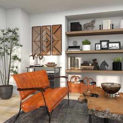 Create an excellent focal point on your walls paired with some cute accent tables, and level up your home with this amazing wall decor. Showcase your personality and turn your walls into an art gallery with this captivating wall décor. Mesmerizing wall art is ideal for industrial, eclectic, and farmhouse-inspired living spaces in a natural setting background. This item ships in 1 carton. Can be hung vertically using the D-rings on the back; nails and screws not included. Suitable for indoor use only. This item ships fully assembled in one piece. This brown colored wall sculptures comes as a set of 3. Contemporary style.