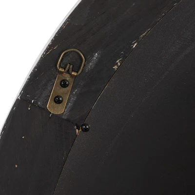 This decorative round mirror great for any wall space, even bathroom walls features natural and vintage-inspired interiors. This item ships in 1 carton. Can be hung vertically using the D-rings on the back; nails and screws not included. Suitable for indoor use only. This item ships fully assembled in one piece. This is a single white colored entryway mirror. Coastal style.